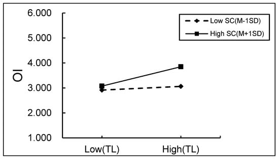 According to Table 9, the analysis of moderated mediated effects reveals that when the external social capital is low, the indirect relationship between transformational leadership and ESG performance via organizational innovation is 0.029, 95% CI = [−0.018, 0.076]. When the external social capital is high, the indirect relationship between transformational leadership and ESG performance via organizational innovation is 0.146, 95% CI = [0.098, 0.200], and there is a significant difference in the indirect effect at both high and low levels, with a difference of 0.117, 95% CI = [0.028, 0.108]. Hence, H6 is supported.