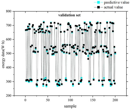 Raw data collected and stored by a power tester or LabVIEW platform often contain noise or missing data due to malfunctions, etc. Generally, missing data are cleaned by sliding windows, moving average filters, and interpolation techniques [34]. The data were also subjected to max-min normalization before model training to facilitate stable convergence of the weights and biases of the learning model. The preprocessed EC datasets were randomly mixed, and a total of 80% of the energy consumption dataset was used for training, 20% of the data was used for prediction, and 200 groups of verification data were randomly selected from the training data.