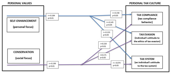 Is there a relationship between personal tax culture (tax compliance, tax ethics, tax system) and personal values, such as self-enhancement and conservation in Slovenia?