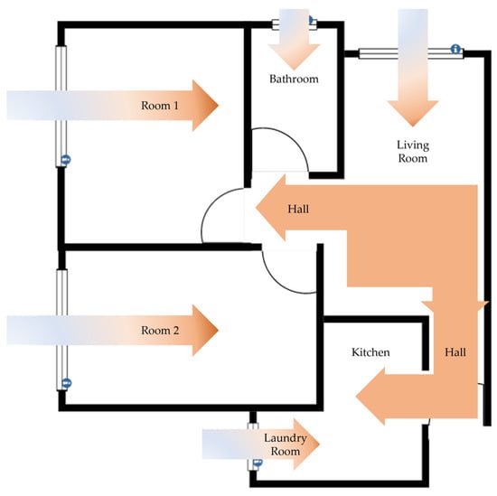 Airflow in a Baltimore Residential apartment (source: authors’ own elaboration based on [25] data and created on SmartDraw website).