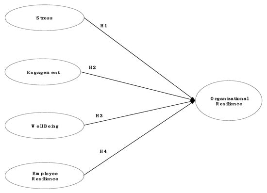 Employee resilience is a concept that refers to how employees deal with turbulent work environments and produce maximum output for their employers. An employee with high resilience maintains valuable resources, exerts their resources, and motivates themselves at work. A low level of resilience can cause strains, stress, uncertainty, anxiety, and burnout that leads to demotivation and an attempt to conserve their current resources [42]. Employee resilience is usually connected with employee well-being. As Caniëls and Hatak [43] delineate, it is important to employees’ well-being that they have a good relationship with their supervisor, in order to achieve employee resilience. As studied by Khan and Rao-Nicholson [44], results indicate an organization’s job design, the flow and exchange of information within the organization, employee benefits, and employee development opportunities all have an impact on employee resilience. Taking the above into account the following hypotheses were developed: