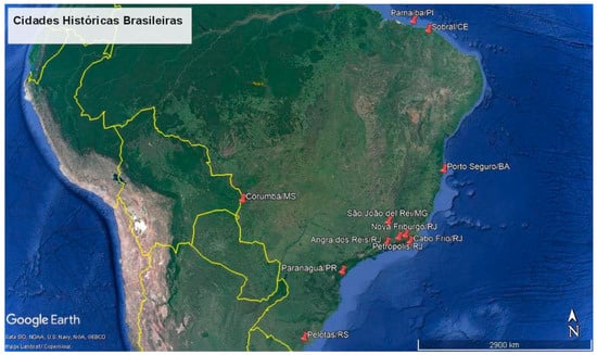 Location with the Brazilian historic cities under study. Source: Google Earth, 2022.