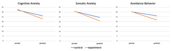 The descriptive results of the posttest revealed that the students in the control group (M = 24.5, SD = 5.69) had higher levels of somatic anxiety than those in the experimental group (M = 20.8, SD = 2.97). The ANCOVA analysis verified that these changes in the students’ somatic anxiety posttest were statistically significant (F = 10.006, p < 0.05, η2 = 0.154). The results indicated that the H1b hypothesis could be supported.