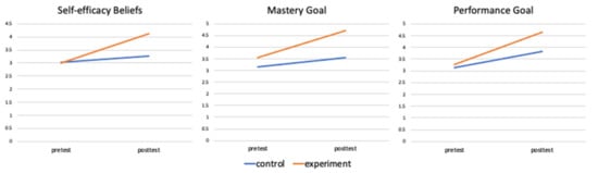 Regarding performance goals, the descriptive results revealed that the control group had lower posttest scores (M = 3.83, SD = 0.475) than the experimental group (M = 4.66, SD = 0.427). The ANCOVA results revealed that these differences in the posttest were statistically significant (F = 47.129, p < 0.05, η2 = 0.461). Therefore, the H2c hypothesis in this study is supported.