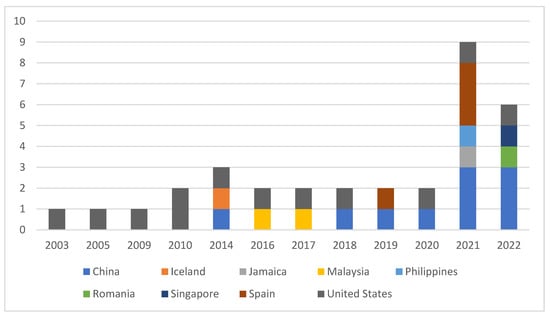 During the first decade, it appears that the United States dominated the literature on parental involvement and student engagement, with 12 articles identified as being conducted in the U.S. Starting in 2014, China took the lead, contributing more than 30% (n = 10) of the total literature output. Interestingly, those publications mainly occurred during the COVID-19 pandemic (2020–2022), which corresponds to the worldwide trend, since 42% (n = 14) of studies were identified through 2021 and 2022 when academic interest in such topics sprouted. In addition to the United States and China, Spain leads the European countries with four outputs, three of which were published in 2021 (during emergency remote learning). Although the publications are scattered across various journals, publishers that focus on child and family issues (e.g., Child and youth service review, Journal of youth and adolescents, Journal of family psychology, Journal of child and family studies) seem to be favoured by international authors (Table 3). See Table 4 and Figure 2 for more details.