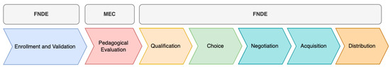 The Brazilian National Textbook Program (Programa Nacional do Livro e do Material Didático—PNLD) is an example of a Brazilian public policy designed to benefit students and teachers in public basic education schools and non-profit organizations [1]. Created in 1985, PNLD comprises a set of planned actions to distribute didactic, pedagogical, and literary books and other educational materials to support academic practice. This public policy helps the Brazilian government improve the quality of books and other materials available for students and teachers and, consequently, improve the teaching–learning process in public schools. The PNLD requires publishers to submit their books and materials through an evaluation process to ensure compliance with quality standards and pedagogical needs defined in the Brazilian curriculum. This program is recognized as a relevant public policy in Brazil.