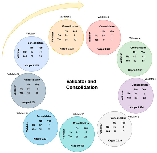 Cohen’s Kappa statistic is a relevant tool to measure the level of agreement between judges. Jacob Cohen presented Kappa as a new technique in 1960 [18] to measure inter-rater reliability for qualitative (categorical) items. In this study, we apply Kappa to measure the agreement of validators to present a deeper discussion on the current validation and triage process. Therefore, to interpret results, the strength of agreement based on Cohen’s Kappa (k) can be classified using different approaches, such as described by Landis and Koch [19] and McHugh [20]. In this article, we used the following classification [19]: