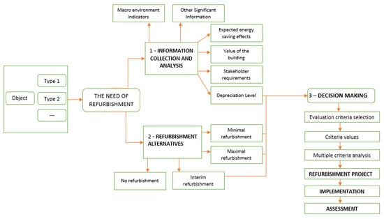 Six key steps make up the proposed decision-making paradigm. Each specific type of building and its surroundings are analyzed in the first step. Numerous indications and situations must be assessed, since in this model, energy-efficient renovation is considered from the perspective of sustainability.