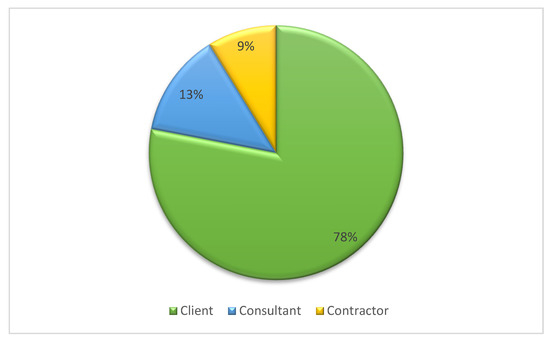 Figure 10 illustrates the major responsibility that falls on stakeholders in the latter stages of the decision-making process. According to the findings, the client plays an important part in the decision-making process. As a consequence, any delay caused by the customer is the most significant factor that contributes to delayed decision making in construction projects. It was noted that the process of decision making on the client’s side is always extended. When clients take their time making decisions, it has a negative influence on the progression of the construction project, and it also has the ability to drive up both the cost and the length of the project. The client’s ability to make sound decisions might be essential to the project’s ability to accomplish the desired outcomes with high quality at the lowest possible cost and on schedule [43]. The client’s inability to make timely decisions might result in a rise in costs, and the project might not be able to meet the requirements [73]. In a similar manner, the client has a vital part to play, despite the fact that the consultant and contractors both play essential roles in this crucial process.