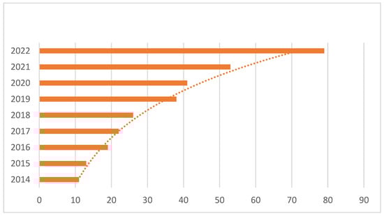 The publications range from 2014 to 2022. From 2019 to 2022, there was a sustained growth in the number of articles published (Figure 3).