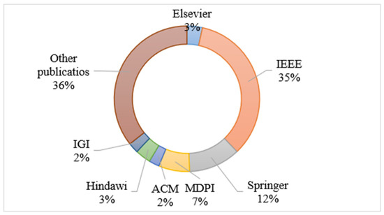 Figure 3. As can be seen, most of the articles have been published in IEEE publications. Springer and MDPI are ranked second and third, respectively.