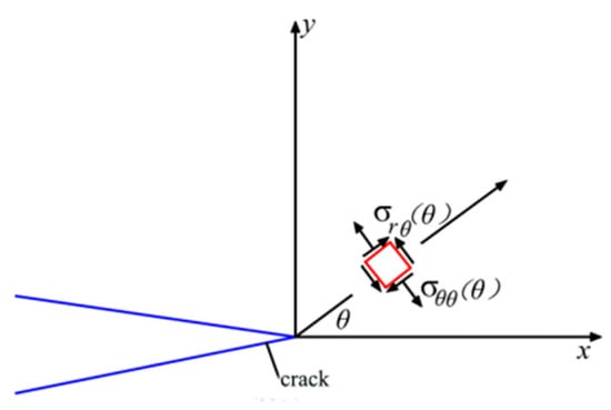 Superimposing the real stress field around the crack with the auxiliary fields (, , ) on each other to obtain [7,8,9]