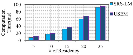 When we forecast even more into the future, every system’s prediction efficiency drops as is to be predicted. The Conv-LSTM is the model that performs the worst, mainly because it ignores the temporal and spatial correlations between both the counting stations. The proposed model surpasses all other algorithms in every circumstance, while the hybrid approach RNN with a soft GRU comes in second place. Advanced DL models are the models that perform the best overall. We furthermore offer the graphics for the other two performance indicators that were compared to all models. The variation for all models, as calculated using the MAE and SMAPE, are shown in Figure 8, Figure 9, Figure 10, Figure 11 and Figure 12. The results of the RMSE investigation that was previously reported yield the same findings. Computation time is determined for predicting traffic congestion to the traffic density.