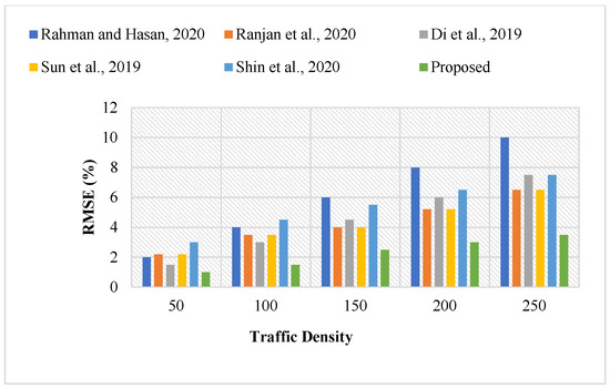 Computational time is plotted concerning several increasing traffic densities, as depicted in Figure 12. Computation time gradually increases with the growth in the number of vehicles, since additional involvement of vehicles includes congestion on the road. This comparison shows the computation time for the proposed method decreases while other existing methods have a harder time in predicting traffic congestion.