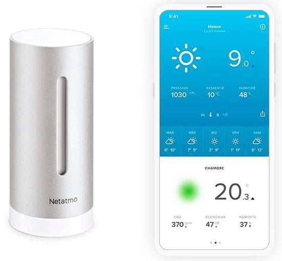 A total of 60 Netatmo smart home weather stations (Figure 1) were installed on desks in the chosen study areas to collect the environmental conditions. Other more detailed data were collected from the occupants, namely, distance from a window, their position vis-à-vis the window, their orientation, the type of desk grouping (attached or isolated), the desk size, and their proximity to the air-conditioning system.
