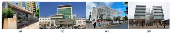 The fieldwork was carried out between December 2021 and January 2022, and between July and August 2022, in four office buildings located in Los Angeles (37° S latitude, 72° W longitude) with a warm summer Mediterranean climate (Köppen, Csb); Rancagua (34° S latitude, 70° W longitude) is classified as a warm and temperate climate (Köppen, Csa); and in Talcahuano and Concepción, which although being only 15 km apart (latitude 36° S, longitude 73° W) with the same climate classification (Mediterranean-Oceanic (Köppen Csb) have differences in their microclimates. The case of Concepción is in a densely built-up area, 600 m from the Biobío River, while the case of Talcahuano is located 300 m from the sea with high humidity and frequent coastal trough.