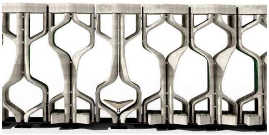 The proposed configuration allows plants to grow on both faces of the plant-growing substrate (‘façade elements’). Consequently, this doubles the vegetative volume for the same volume of plant-growing substrate compared to modular designs, which are universally single-sided. The porous design encourages airflow through the façade by creating a stack effect. This increases air movement and encourages airflow over the substrate, which would be expected to improve the air pollution removal performance of the system []. The resultant design thus creates new opportunities for VGS environmental amenity increasing its scope of applications and improving the environmental performance of the host building. The resultant design transforms the VGS beyond its conventional functions of aesthetic greening to create novel ecosystems, which enhances the formation of habitats for a more diverse range of flora and fauna.