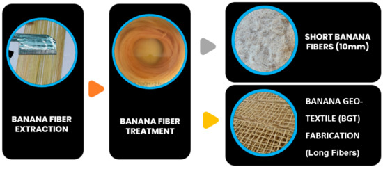 Banana Geotextile and 10 mm Short Banana Fiber Fabrication Flow Chart.
