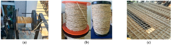 NFs are cheaper and are considered waste, making them abundant and locally available [17]. They are also renewable, biodegradable, and non-toxic [12]. Studies have been conducted on sisal and BF reinforced composites, proving the strength of BFs [18,19]. BFs have reported high mechanical characteristics compared to other NFs, making them a viable reinforcing material for a wide range of engineering applications [19,20]. Moreover, hybrid short fibers have also been used for mortar reinforcement, and long fibers for textile reinforcement [21]. However, NFs are not included in the state-of-the-art review of TRMs by Koutas et al. [22] which focuses on synthetic fibers as textiles.