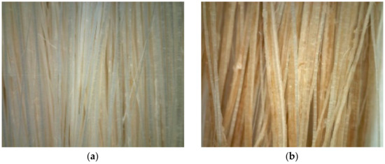 Table 4 shows the results of the tensile strength test of banana fibers. The stronger fiber is the TBF with 4% of NaOH and 4 h of treatment, with a 3.36 N breaking load and 0.54 mm maximum extension. TBF has a tensile strength improvement up to 83.60% when compared to the untreated banana fiber (UBF). This result agrees with the image captured by optical microscope for TBF, which became rougher after treatment and signified the significant enhancement of fiber tensile properties when treated with NaOH, as shown in Figure 9.