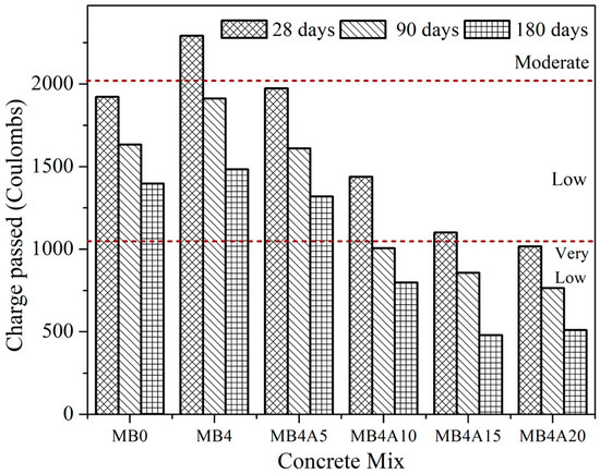 - RCPT test results empower the MB4A15 concrete mix, as it showed very low chloride-ion penetration due to its dense pore structure and chemical stability. Therefore, it has been concluded that 40% of the industrial waste, i.e., coal bottom ash with a combination of 15% Alccofine material, as a replacement of cement, is a desirable combination in order to accomplish enhanced properties of concrete at a fresh as well as hardened stage;