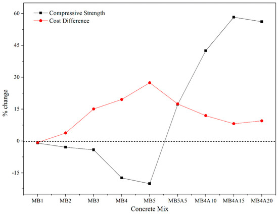 - It has been concluded that for the MB4A15 mix, the cost has increased to 8.14% compared to control concrete; however, a significant increase of 58.3% in compressive strength can be observed, which is very large compared to the cost involved.