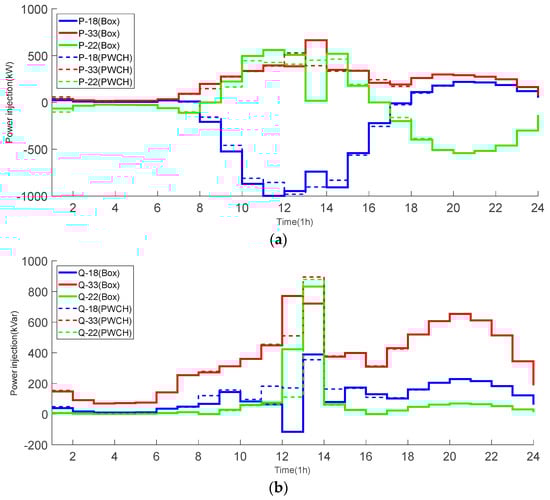 (5) Compared with the PWCH-based method, the box-based method transmits much more real/reactive power and makes more conservative decisions.