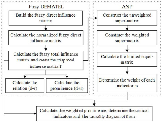 To sum up, the key indicator selection process based on the fuzzy DEMATEL-based ANP model is shown in Figure 2.