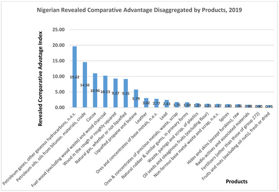 Nigerian Revealed Comparative Advantage Disaggregated by Products, 2019. Source: Authors’ Computation from [40].