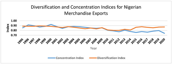 Diversification and Concentration Indices for Nigerian Merchandise Exports. Source: Author’s Computation from [64].