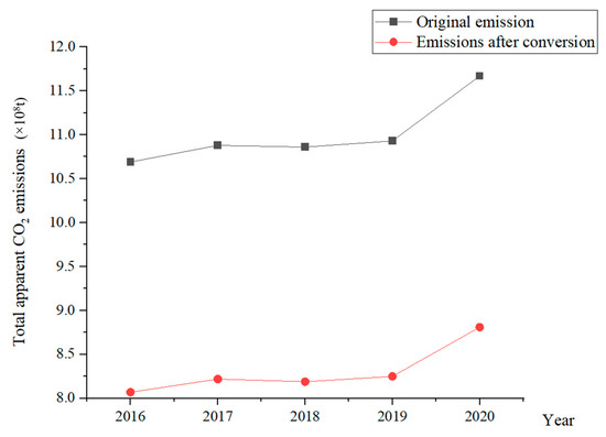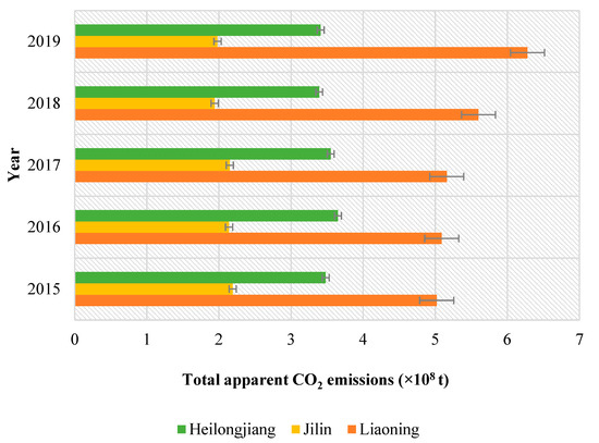 Total CO2 apparent emissions in Northeast China from 2015 to 2019.