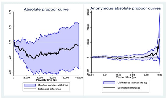 According to the measurement results in Figure 3, combined with the determination criteria of the absolute pro-poor curve measurement method of economic growth, from 2016 to 2018, China’s rural economic growth was absolutely pro-poor, which is very robust compared to the measurement results of 2014–2016.