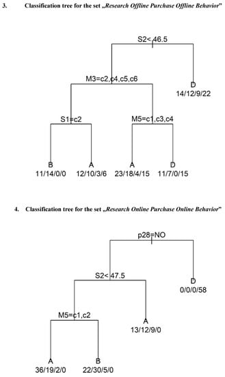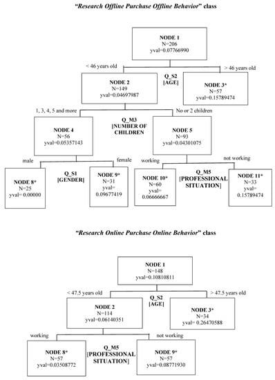- For “Research Offline Purchase Offline Behavior” class, the age of the buyer of tourist services (Q_S2), the number of children under 18 in the household of the purchaser of travel services (Q_M3), occupational situation (Q_M5), and the gender of purchaser of travel services (Q_S1) are factors. However, studies have not shown a relationship between this behavior and other socioeconomic factors.