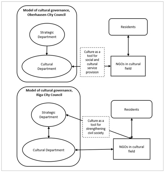 Figure 2. Schematic illustration of cultural governance models in Riga and Oberhausen.