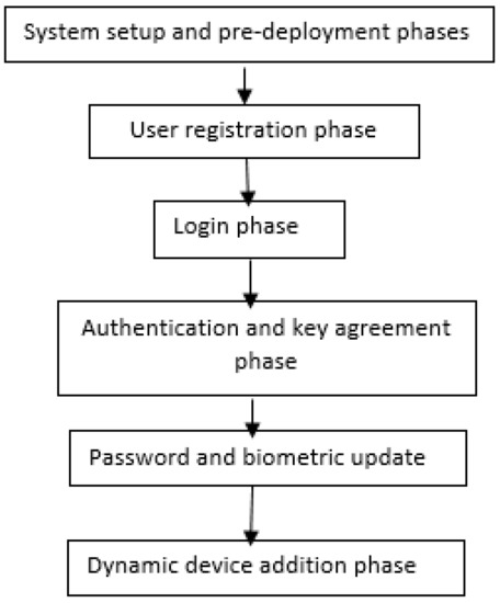 - Belkhouja, T.; Du, X.; Mohamed, A.; Al-Ali, A.K.; Guizani, M. Biometric-based authentication scheme for implantable medical devices during emergency situations. Future Gener. Comput. Syst. 2019, 98, 109–119. [Google Scholar] [CrossRef]