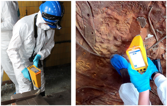 The application of nondestructive characterisation methods field tested in and around the PChP buildings is explored below. It is the experience of these authors that in initial field surveys, less equipment and lower complexity of equipment allows more data to be collected. This is due to the reduced time spent carrying, testing, decontaminating, inventorying, and problem solving. There will always be a tradeoff in terms of the weight that operatives can carry and the amount of analytical equipment that can be carried. Equally, based on the limited carrying capacity, the toolkit for in situ investigations must be carefully planned and consider factors such as battery life, as well as mass of equipment and even the ease and cost of transportation in compliance with transport regulations.