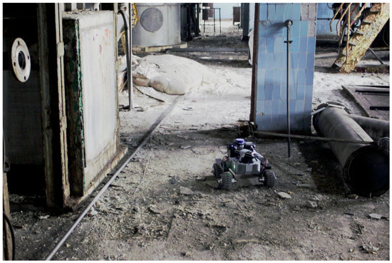 Photogrammetry can generate high-quality 3D maps, but one limiting factor is the computing power requirements for stitching together the images. This can be a time-consuming process and is difficult to perform accurately in real time; it is normally done in post-processing. A LiDAR unit uses the reflection of lasers to find the distance to the sensor’s surroundings and can use this data to perform simultaneous localisation and mapping (SLAM), where successive scans are compared to work out the location of the unit in space and build up a map. In this way, the position of radiation measurements can be ascertained in real time. A LiDAR unit can be carried by a human operator, mounted on an unmanned aerial vehicle (UAV) [69] or unmanned ground vehicle (UGV) [70], mounted on a robotic manipulator, or mounted to a human operator, and information from other coincident or adjoined sensors, e.g., gamma spectrometers, can be position stamped by the LiDAR [70]. An example of an UGV is shown in Figure 8.