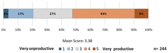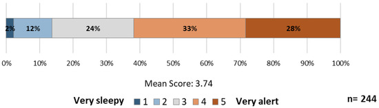 The questionnaire focused on understanding participants’ perceived alertness, concentration, productivity, and comfort in their offices. Figure 7 evaluates all participant feedback regarding their alertness level in their offices. A total of 61% of respondents felt alert or very alert. However, 14% of all participants claimed that it was difficult or very difficult for them to remain alert on the job. Figure 8 and Figure 9 show that 18% of all respondents found it hard to focus on their work, while 20% of them felt unproductive in their offices.