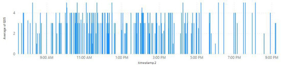 A period analysis indicated that the average particulate matter (PM 10—unit μg/m3; resolution = 0.3 μg/m3 ± 10%) measured by all participant sensors was 2.37 μg/m3. The external sensor showed the average outside PM 10 was 42.4 μg/m3, with minimum and maximum measurements at 26.4 μg/m3 and 77 μg/m3, respectively. The average volatile organic compounds (VOC) level measured by all participant sensors was 0.8 ppm. The external sensor reported an average VOC level of 1.1 ppm. Thus, the air quality metric returned by the indoor sensors indicated no major issue regarding the office air quality, and demonstrated that the air handling equipment and air flow management of the building were effective in cleaning the intake air.