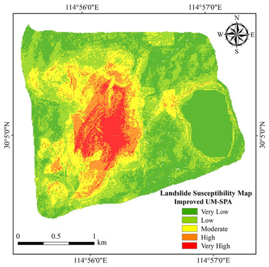 Landslide susceptibility zonation map produced improved UM-SPA model.