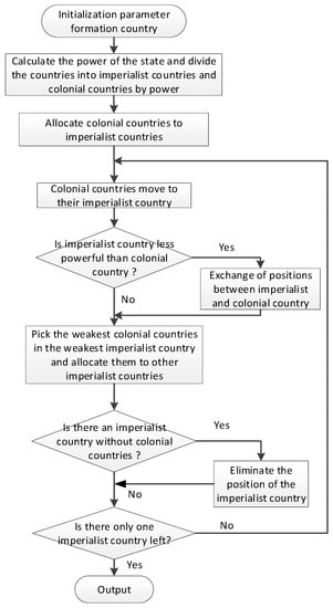 The detailed steps of the imperialist competitive algorithm are shown in Figure 2 and Appendix A.