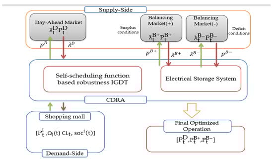 As a result, CDRAs participate in the balancing market to offer ancillary services to the power system to guarantee renewable energy availability in trading strategies. A CDRA can purchase or sell energy in deficit or surplus from or to shopping centers. At this point, it should be clear that the participating shopping centers can switch their electricity on or off and alter its usage. Finally, a CDRA engages in the balancing market to meet the high or low regulations for the electricity system. The balancing market reaches its final settlement a few seconds before the time at which electricity is delivered. In a short time, CDRAs can offer the flexibility of the centers to the power market. Shopping centers reacting to DR signals in seconds can compete in this market.