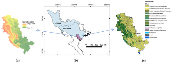 (a) Digital Elevation Map of the basin; (b) Geographical location of Day Basin as part of the Red River Delta in Northern Vietnam and (c) Land cover map of Day Basin.
