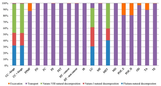 Percentage contribution of potential impacts for Scenario II—landfill.