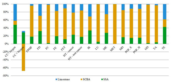 Furthermore, the results of limestone and SSA LCIA have as a hotspot the transport of supply to the city of Belém and, as previously discussed for Sargassum particles, the choice of geographic scope can worsen or mitigate the potential environmental impacts.