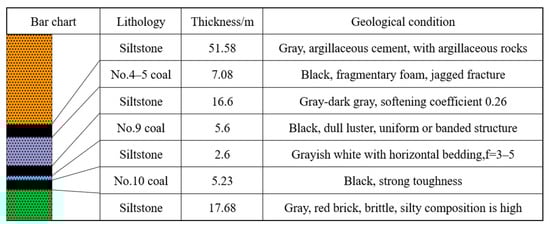 Baoping coal mine in the Huishuangou Mining area of Changji City is located southwest of Zhunnan coalfield. The coal seam dip angle is 13~22°, with an average of 19°. The column chart of rock strata is shown in Figure 1.