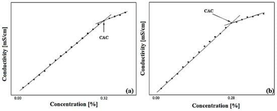 3.7. Critical Aggregation Concentration by Conductivity Measurements