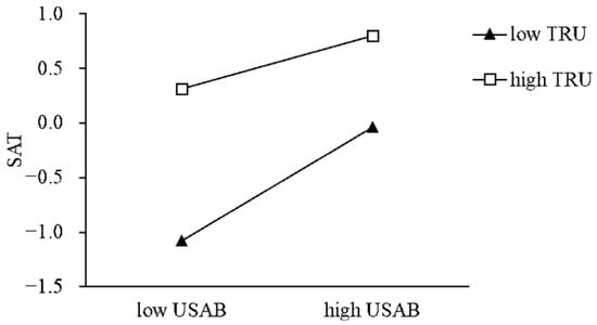 Moreover, Figure 4 revealed that the moderating effect of trust on the process of usability affecting satisfaction was also significant (bsimple = 0.19, t = 2.08, p < 0.05) for participants with high trust. For participants with low trust (i.e., one SD below the mean), the relationship between usability and satisfaction was stronger (bsimple = 0.41, t = 5.86, p < 0.001).