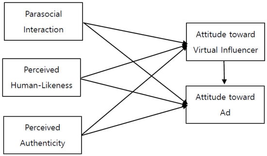 Horton and Wohl [18] found that individuals develop a sense of intimacy and identification with the celebrity via the media, and this phenomenon is called a parasocial relationship. The parasocial relationship is formed when individuals develop varying degrees of identification with a celebrity or media personality. Prior studies show that media audiences experience parasocial interactions with cartoon characters, virtual avatars, and even bodiless chatbots [19,20,21]. In response to the significant influence of parasocial interactions on the media reception process, scientists and media producers have attempted to identify factors that could be linked to stronger parasocial responses among audiences [22]. As a result, various distinguishing characteristics on both the side of the media user and the media character have been uncovered as crucial precursors to the intensity and nature of parasocial interactions [23]. Thus, it is plausible to conjecture that people undergo parasocial interactions with virtual influencers.