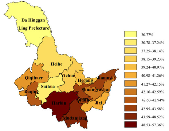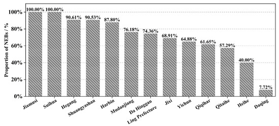 Proportion of NEBs in 13 cities in Heilongjiang Province.